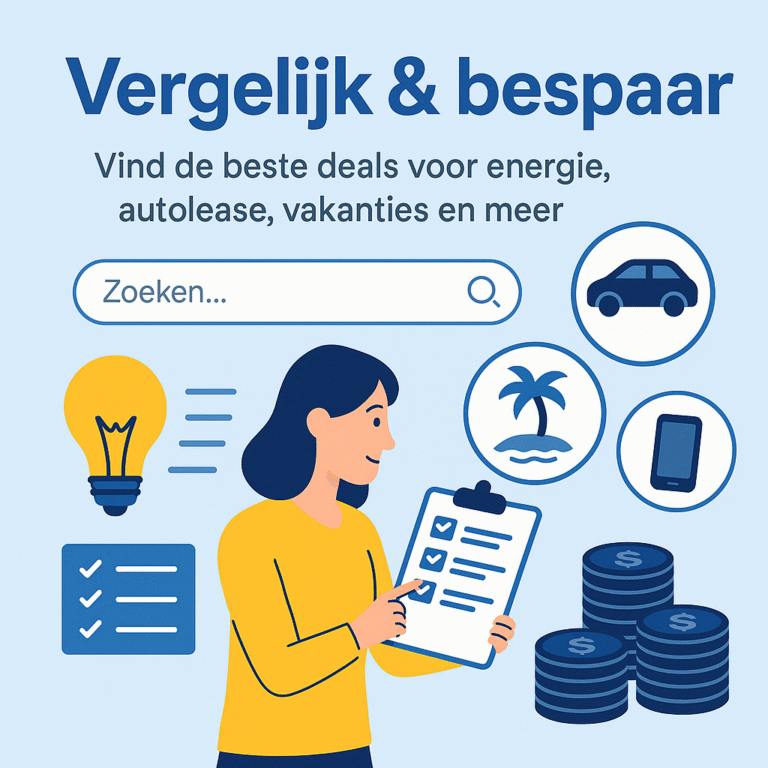 Ons team volgt dagelijks de marktontwikkelingen en verzamelt actuele gegevens van betrouwbare aanbieders. Deze data zetten we om in overzichtelijke vergelijkingen die jou direct laten zien welke optie het beste past bij jouw situatie. Of het nu gaat om energie, sim only, internet & tv, autolease, vakanties of boekhoudsoftware – wij maken vergelijken eenvoudig en duidelijk.